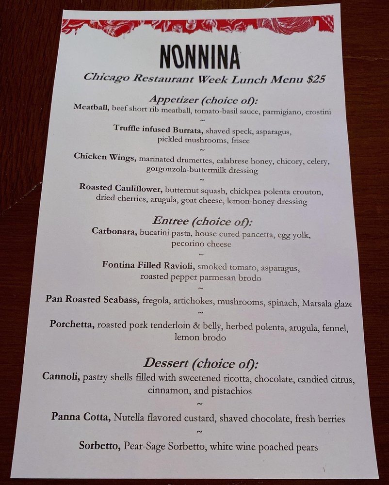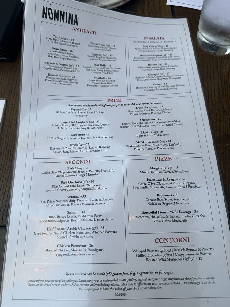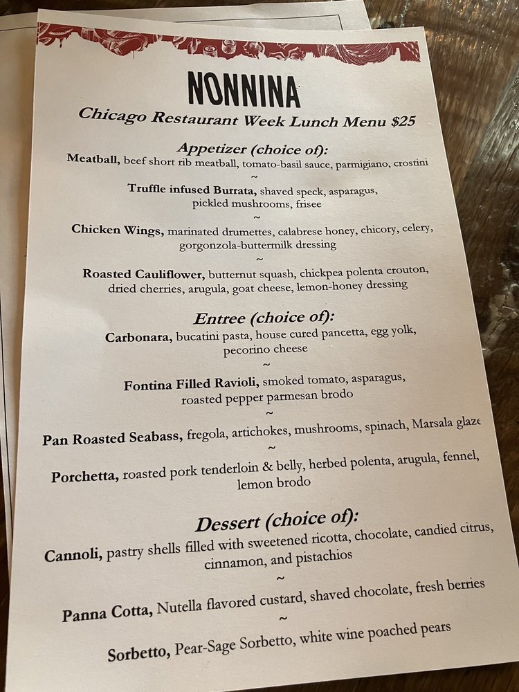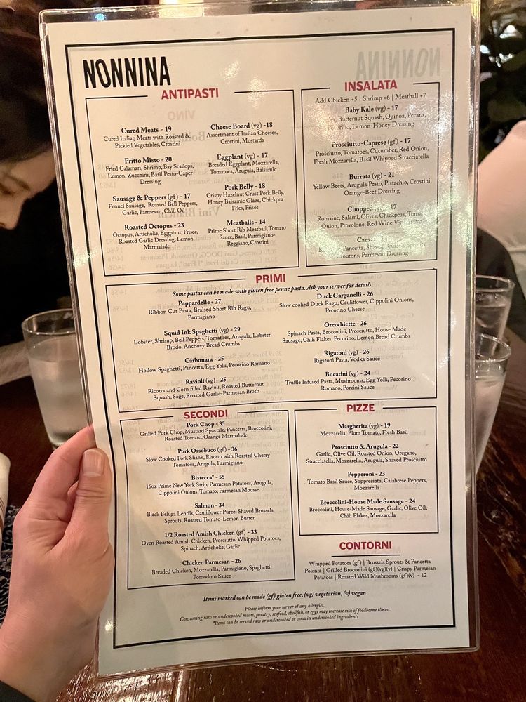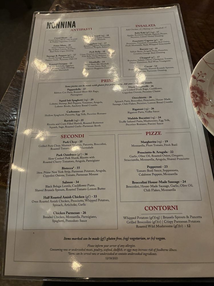 Nonnina Menu